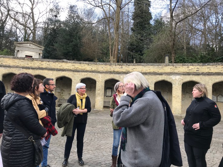 Brittany explaining the similarly in symbolism between the ‘cut off’ Victorian column in the background and the broken topped modern grave in the foreground