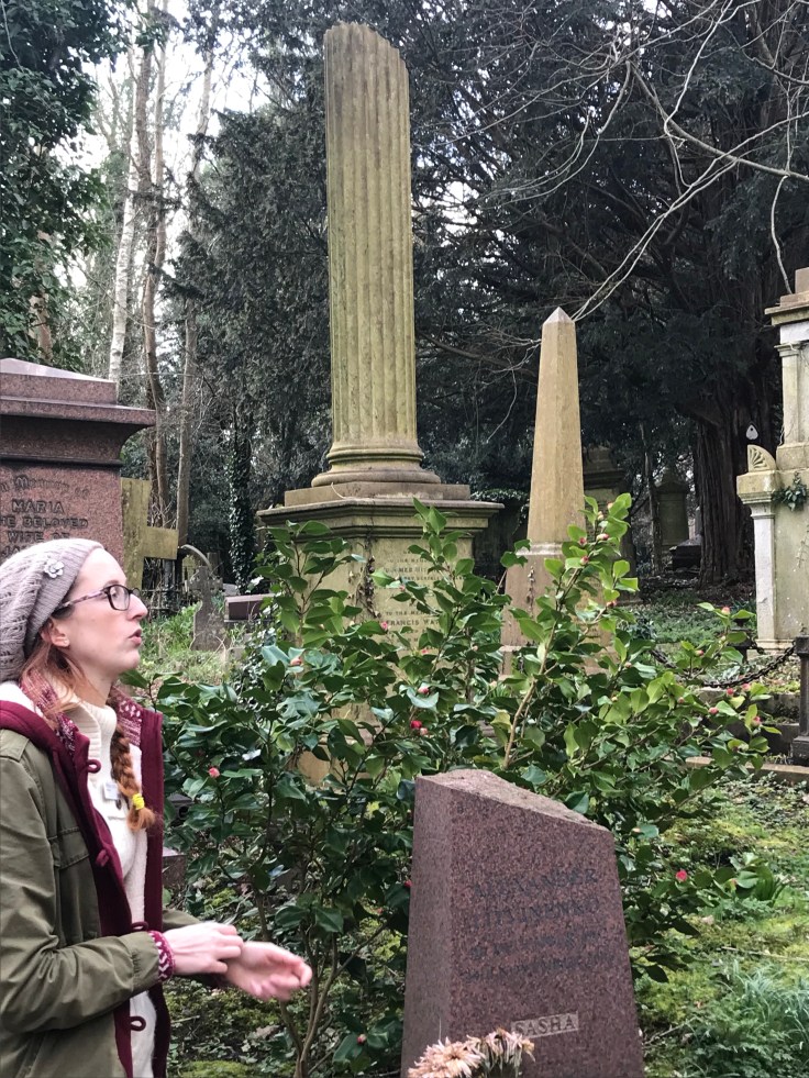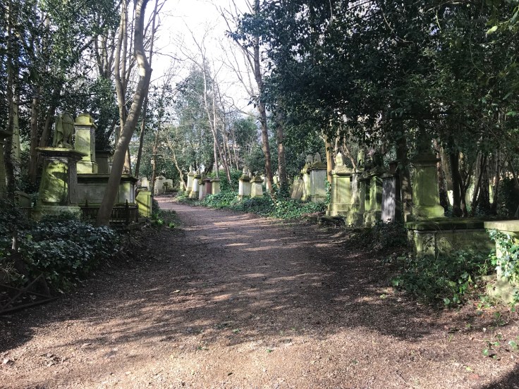 Laura D and I visited Highgate yesterday in the brilliant sunshine that seems so distant on this grey and snowy day today! The West cemetery is only available to be visited via organised tour which can be booked on their website here- https://highgatecemetery.org
