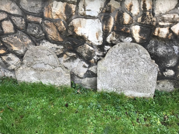 There are four super old gravestones of interest in the churchyard which I am reliably told here date from 1695-1717. I liked walking past these on my walk home from school, they are propped up against the wall of the church on the Aldi side and are interesting but not what I consider the most awesome thing about the churchyard. They nicely have the iconography of the period with a skull on at least two as below.