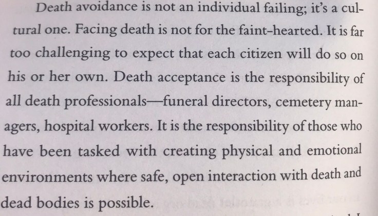 Sadly, I see their need for me to not speak of my work as a complete denial of what is inevitable. I spent a while thinking everyone would be better off if they thought exactly like me but that was foolish and I’ve now come round to the idea that the key is the acceptance part described in that passage. We don’t have to like the fact that we will die one day, but as long as we can acknowledge and accept that it will happen we are in a much healthier place. Acceptance will lead to the necessary conversations to make the process easier for everyone. If I can help progress this way of thinking in any way I can then I will.