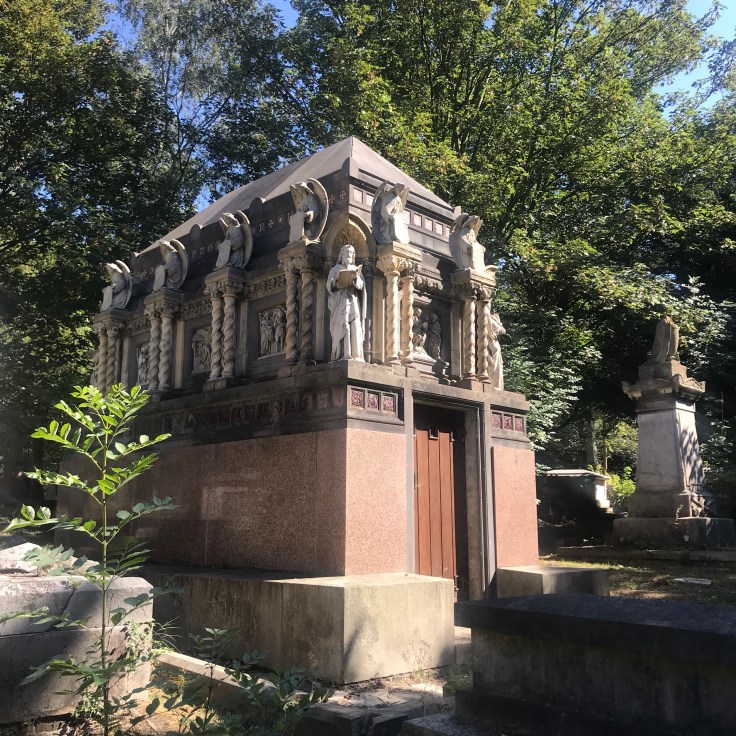 The cemetery itself seems huge. It had a good combination of some of the best bits of the others we have visited. A chequered past, some graves that are falling apart and others that are pristine from renovation. Big looming mausoleums that cannot fail to impress, examples of Victorian funerary symbolism galore and smaller modern gravestones. There’s famous names there too, Mrs. Beeton, Henry Doulton, Henry Tate and John Letts to name but a handful. In case you were wondering, Henry Tate is both responsible for the Tate Gallery and also his company later became Tate & Lyle!