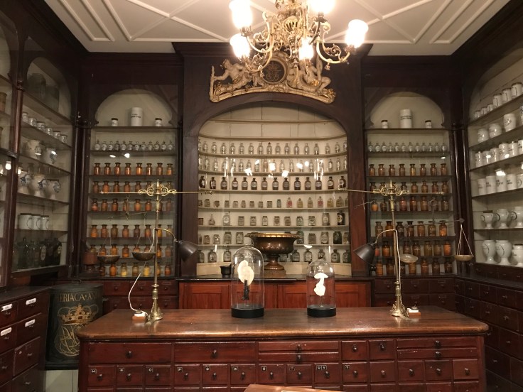 The tour took us through the remaining rooms, starting of looking at some early surgical procedures such as trepanning and amputation. We then moved onto the early thoughts of the four humours of the body and how this developed through time to what we know today. This was very interesting, and included a look at the auditorium that was used for early anatomy and surgical demonstrations and lectures, and also a discussion of how the concept of miasma formed and was then forgotten. This is the belief that infections and diseases were carried in the air, which later changed once we understood infection control a lot better!