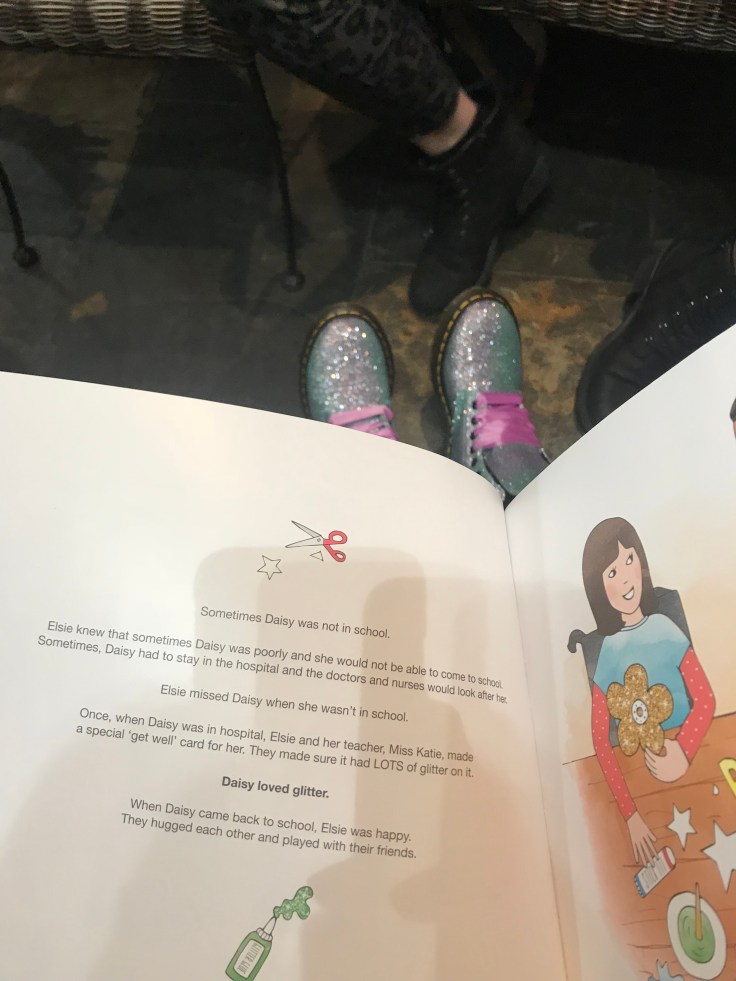 We also discussed a book that was shown to us by our regular attendee Becky. The book is called Goodbye Daisy and is to help children and children with learning disabilities process the death of a friend. It’s a wonderful book that can be purchased here, I can thoroughly recommend it as it really made me think about some new perspectives on dealing with death. I also love the fact Daisy loved glitter and I’d chosen to wear my glitter boots that day. It was better than coincidence! Our next Death Cafe is the 16th April, please get in contact if you are interested in attending.