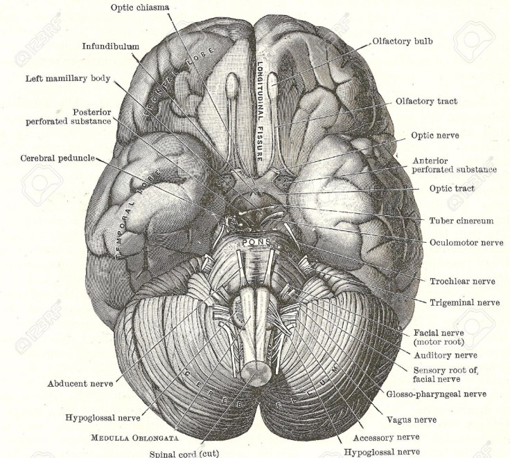 In my around 18 months of being a trainee I have now reached my next milestone of 100 brains removed! That means I’ve roughly done slightly less than that in eviscerations I would imagine, as sometimes I have been in the post mortem room and assisted others by just ‘doing the heads’ as we call it. I’m really chuffed that I kept this count and that I’ve got there, it feels good to know. Plus I told the trainee Neuro pathologist who’s been working with us and he said he has done six! I said I just need to get working on what the parts are called now because he puts me to shame naming each and every part, and some bits I really have no idea. I thought it might be a good time to explore the parts of the base of the brain that I’ve learnt so far and what they do.
