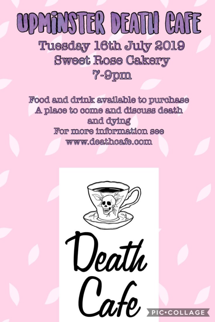 Followed by the Upminster Death Cafe at 19:00 at The Sweet Rose Cakery!
