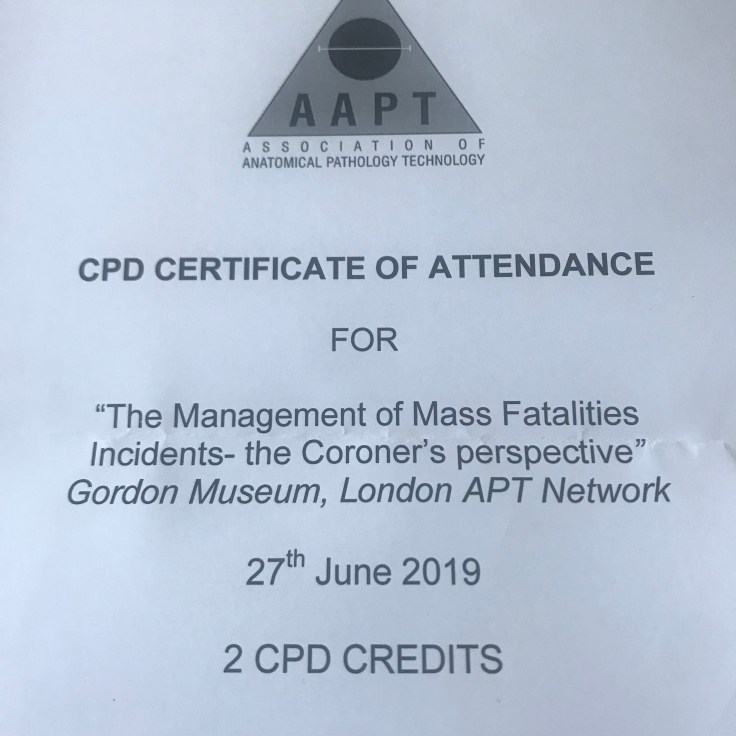This week I was also incredibly lucky to attend an AAPT event at probably my favourite museum ever with some awesome people. The talk was focused on mass fatalities by the inspiring Dr. Fiona Wilcox who is HM Senior Coroner for Inner West London. It was fascinating and absolutely riveting, plus I’ll gladly take any advantage to wander about the Gordon if only to stare at Joseph Towne’s wax models for a while. They are so beautiful I have to admire them when I can.