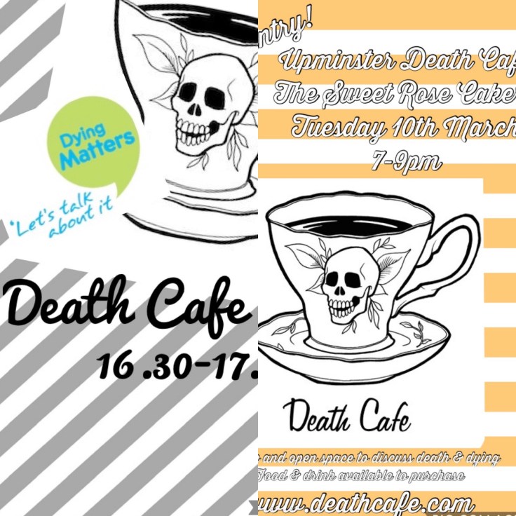Next week is a Death Cafe double bill which will still be going ahead! Monday I will be at Queen’s Hospital in Romford at 4.30pm for an hour in the restaurant area. On Tuesday the monthly Upminster Death Cafe will be at The Sweet Rose Cakery at 7pm. Anyone is welcome to attend either of these events and I’m hoping for some great discussions. Plus, I don’t need to but I will once again mentione the incredible Vegeterian Stacker at The Sweet Rose Cakery because it’s an excellent reason to attend alongside the cheery death chats.