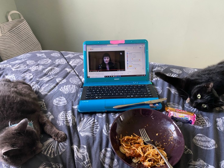 Got comfy to watch Romany’s talk on Wednesday evening! Ruby eyeing up my dinner as standard.