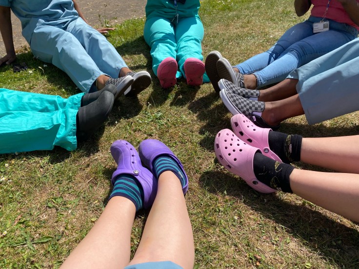 Mortuary team rarely seen outside the basement in the sunshine. Pandemic makes us do some strange things.