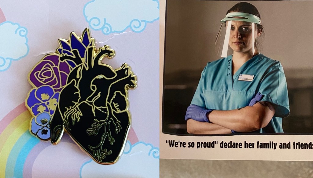 Something lovely that did happen this week was receiving some lovely gifts and cards from friends for finishing my assessments. I hope they aren’t celebrating too soon and I have actually passed, but it is a great feeling for the exams to be done and that in itself is a reason to celebrate. Received a lovely card from one friend and Rachel who I host Death Cafe with got me a gorgeous pin badge from a company called Curiology who you should check out here if you like cool stuff like that!