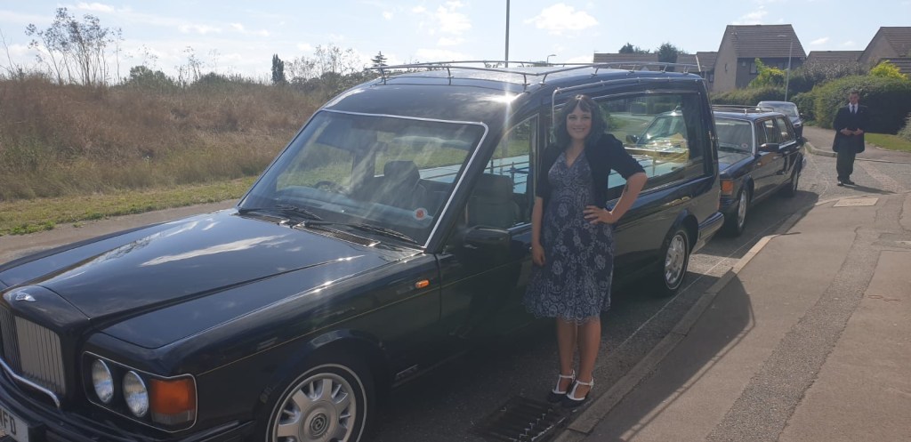 You may also have seen that I arrived at my wedding in style, in a hearse driven by a local funeral director who I am good friends with and another friend FD drove a limousine behind with my friends and family. I would like to add that I was in the front (not the back!) of the hearse, and in a way my reasons for doing this were coincidental and two fold. My wedding happened at short notice, it was a small event which we were notified of going ahead only five weeks prior to the date. I wanted a way of getting to the registry office which was nice but wasn’t sure what to do until I had an idea to ask a local funeral director company to help me out with a limousine. When I asked them they were very happy to help, but said after ‘it’s not like you need a hearse’ to which I immediately replied ‘what if I did want a hearse?’ and it just sort of happened from there. Once the idea was in my head I wanted it more than anything, a great way to normalise death once again. The hearse is a grand vehicle, it’s beautiful inside and about as plush as vehicles come. What a shame to only experience that when you’re dead! My Mum and Dad sat behind the driver, I never knew hearses had so many seats. My Dad even joked it was the only time he would get to be in a hearse and know about it. I’m not sure what the high street, the registry office or some of my guests made of it but a few said it was not entirely a surprise to see me do such a thing.