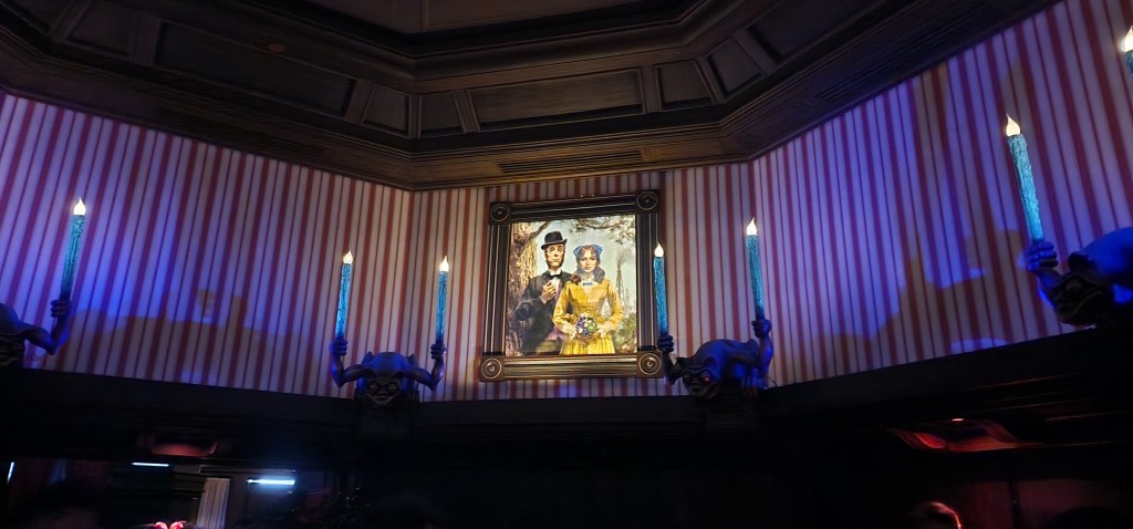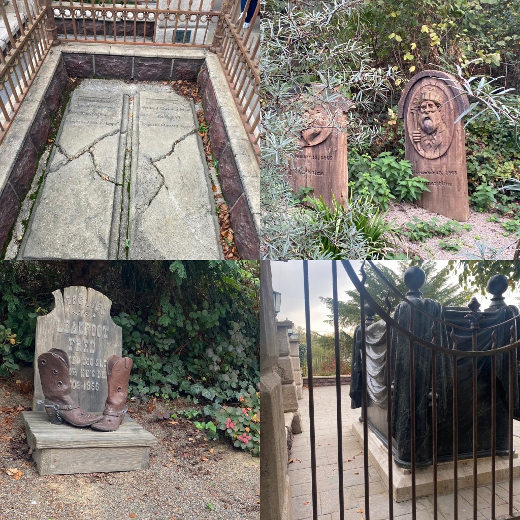 The haunted mansion remains my firm favourite in all the attractions at Disneyland. It has changed a lot since I was last there five years ago and I won’t spoil anything but it’s been updated in a marvellous way. Sadly, our first attempt at this ride was hindered by technical gremlins and we walked into the mansion fully lit up which seemed a little off and creepier than it is with mood lighting. We were then led away through a tunnel and up some stairs which were very industrial looking and added to the eeriness. Once outside, we took the time to wander the little graveyard outside the mansion with its numerous grave stones and sculptural tombs. Luckily, on Halloween day we took to the ride twice and each time I noticed different things which I loved.