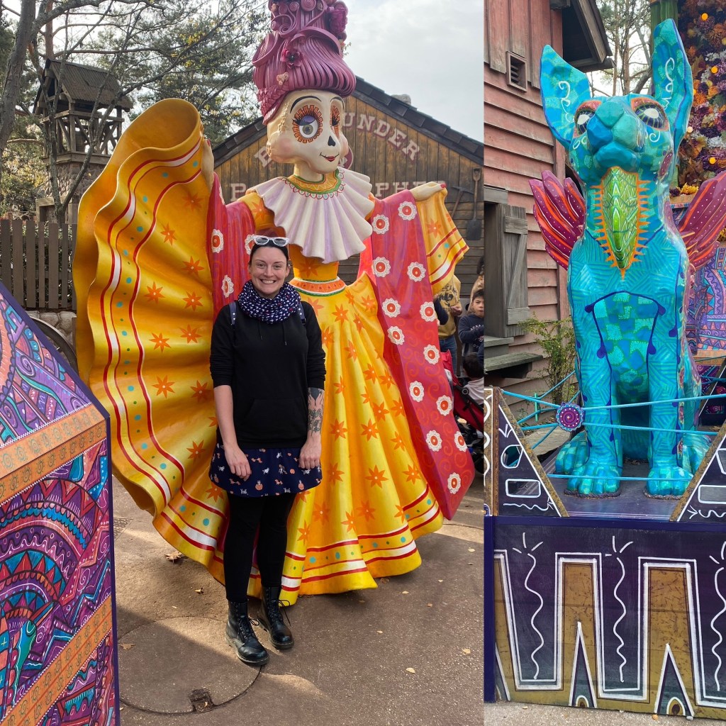 One of the first things I saw on my visit were the huge Coco figurines and colourful decorations which I adore. Coco is wonderful because it brings the Mexican festival together with colour and happiness and hope. I also love it because my dog Patrick is very reminiscent of Dante in the film, and the skeletal characters (the dead who are still remembered and celebrated by the living) are just adorable.